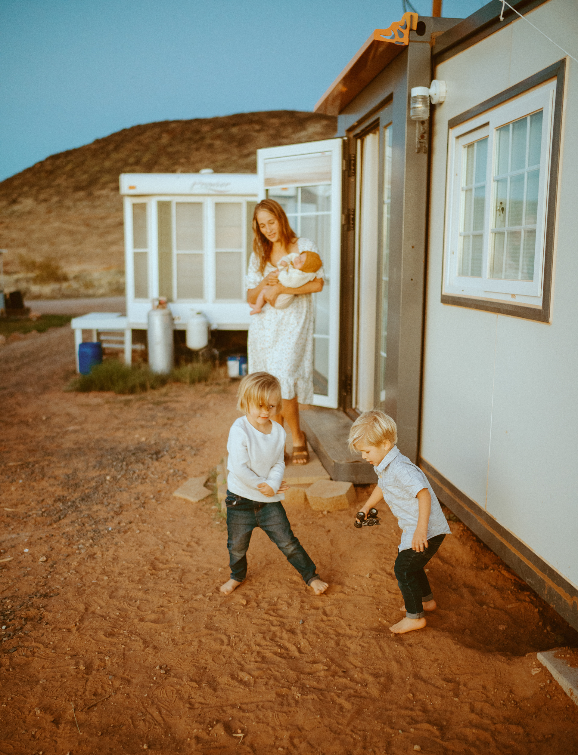 When Emily contacted me about doing family photos at their tiny home in Hurricane, Utah I was thrilled. We were really on the same wavelength with capturing the details of their family at this time--everything from the golden window light to the boys playing and their cute little clothesline on the side of the house. Baby Amara was of course, the star of the show as the newest addition to the family.